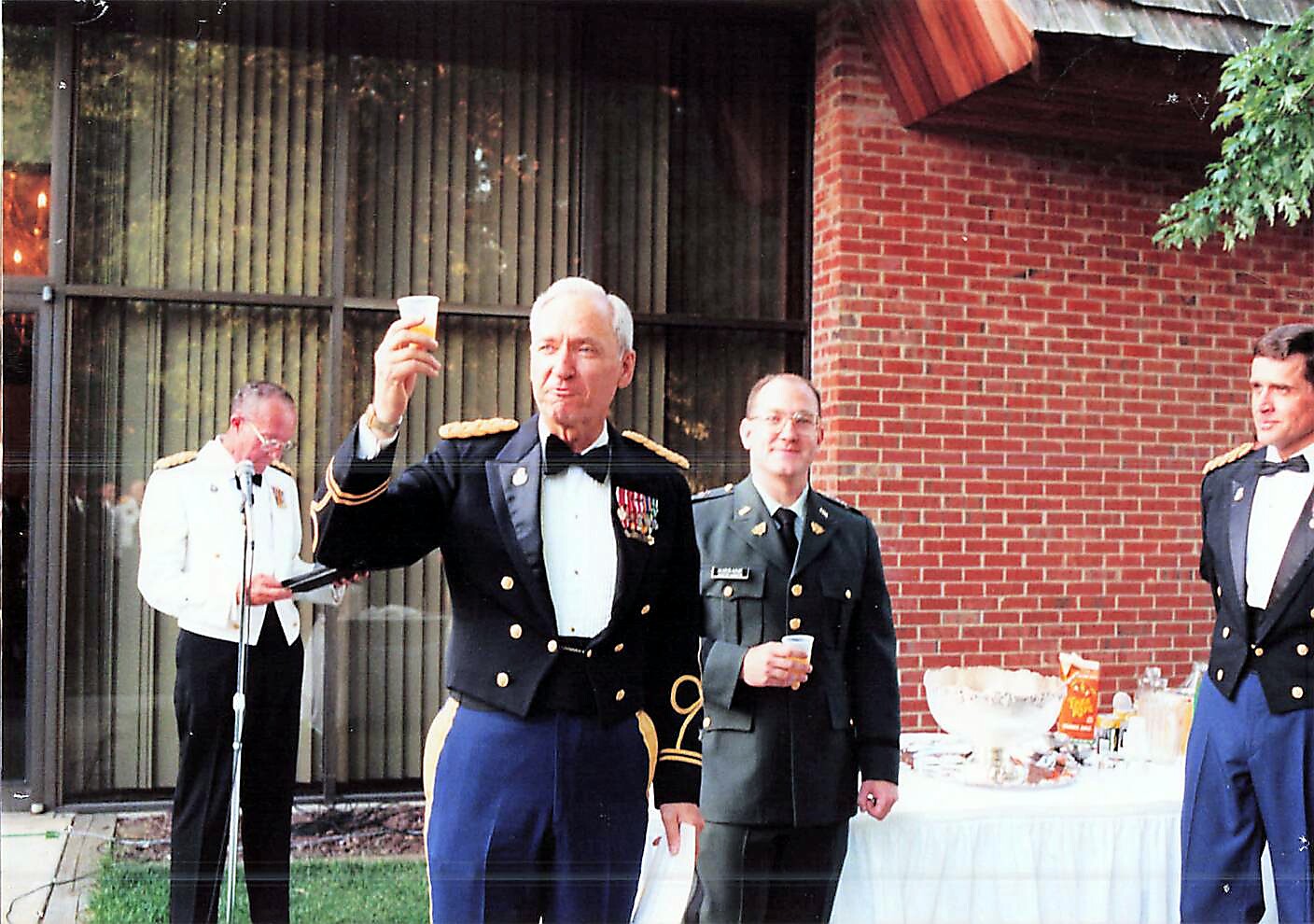 He was drafted into the Army in 1954 and deployed to Korea, serving there just after that war ended but conflict remained. When he returned, he acted upon the call to ministry he had heard earlier, while in college. During seminary, he found a theological and ecclesial home with the Evangelical Covenant Church and completed a year of orientation at North Park Theological Seminary in Chicago, while serving as pastor of the South Chicago Covenant Church, as well as in the U.S. Army Reserve Corps. He was called to active duty in 1966. Nine months later, he deployed with the 4th Battalion, 47th Infantry, 9th Infantry Division to Vietnam. His year there ministering to soldiers on and off the battlefield profoundly formed him for the rest of his ministry and life. His relationships with the men of Charlie Company continued until his death. He remained on active duty upon coming home and flourished in his career, ultimately serving as the commandant of the United States Army Chaplain Center and School and as the post chaplain at Fort Leonard Wood, Missouri, at the time of his retirement. He was awarded ten medals during his years of service, including two bronze stars for valor in Vietnam.